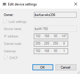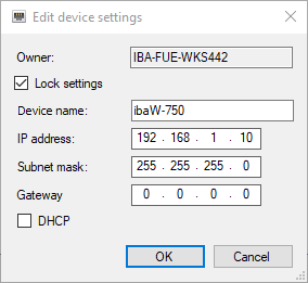 If the settings have been set and locked by another ibaPDA computer, the fields are write-protected and cannot be changed.