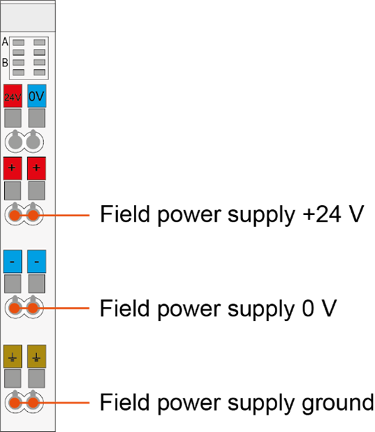 Individual terminal types connected to the ibaW-750 system require a 24 V voltage supply via the field supply.