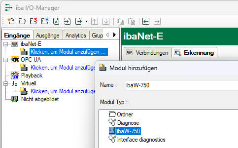 Wählen Sie den Modul-Typ ibaW-750 aus.