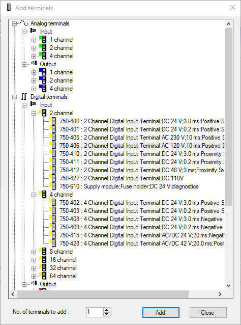 If a terminal is to be added several times, enter the desired number in the Number of terminals to be added field.