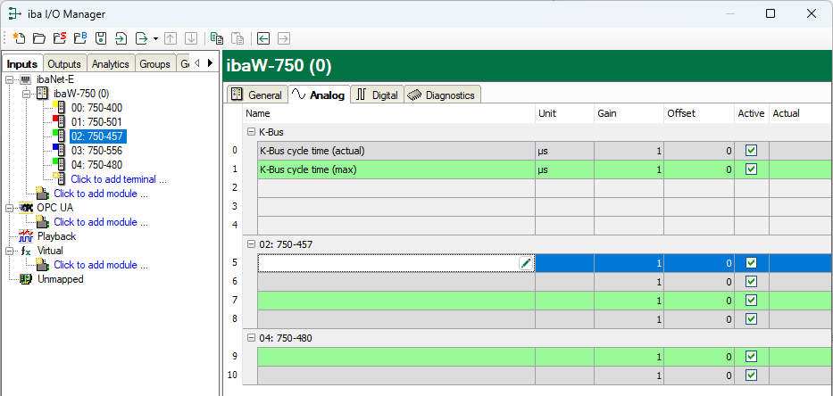 The analog signal table is automatically adjusted for each terminal type. The terminals are displayed in the order in which they are added.