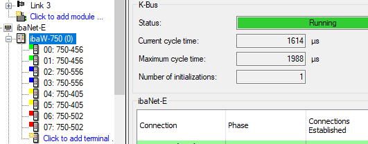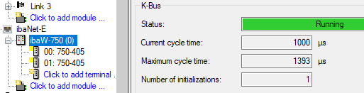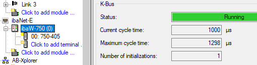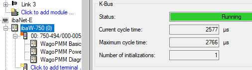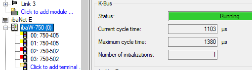 Erst nach Inbetriebnahme ist die tatsächliche K-Bus Zykluszeit im ibaPDA ersichtlich.
