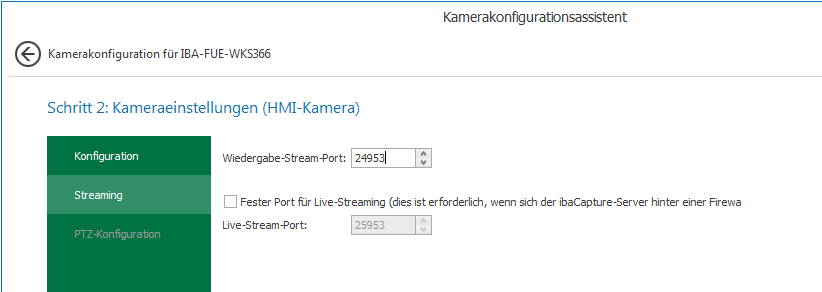 Im nächsten Schritt können Portnummern für Video-Streams zugewiesen werden, siehe Kapitel Streaming-Ports.