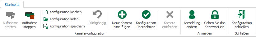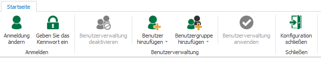 Wenn sich ein Benutzer anmeldet, der nicht der Administrator ist, hängen die verfügbaren Konfigurationsfunktionen von dessen Berechtigungen ab. Im Menüband werden nur erlaubte Funktionen angezeigt.