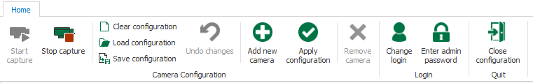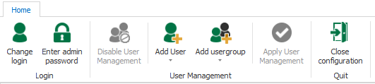If a user other than the admin logs in, the available configuration functions depend on his granted permissions. Only permissible functions will be shown in the ribbon.