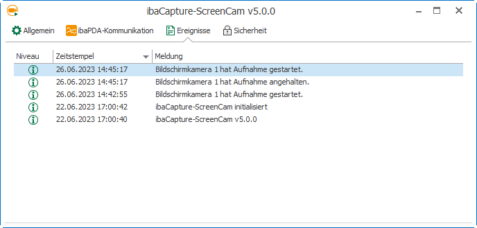Öffnen Sie ibaCapture-ScreenCam mit einem Doppelklick auf das Symbol