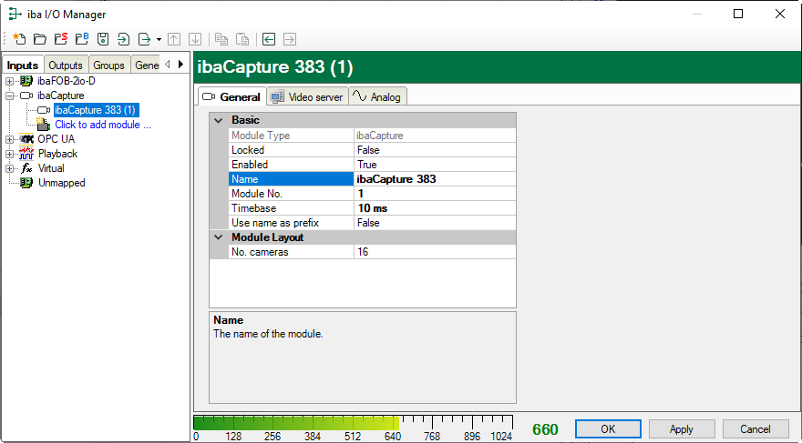 The settings for the connection between ibaPDA and an ibaCapture server are made in the configuration of the ibaCapture module.