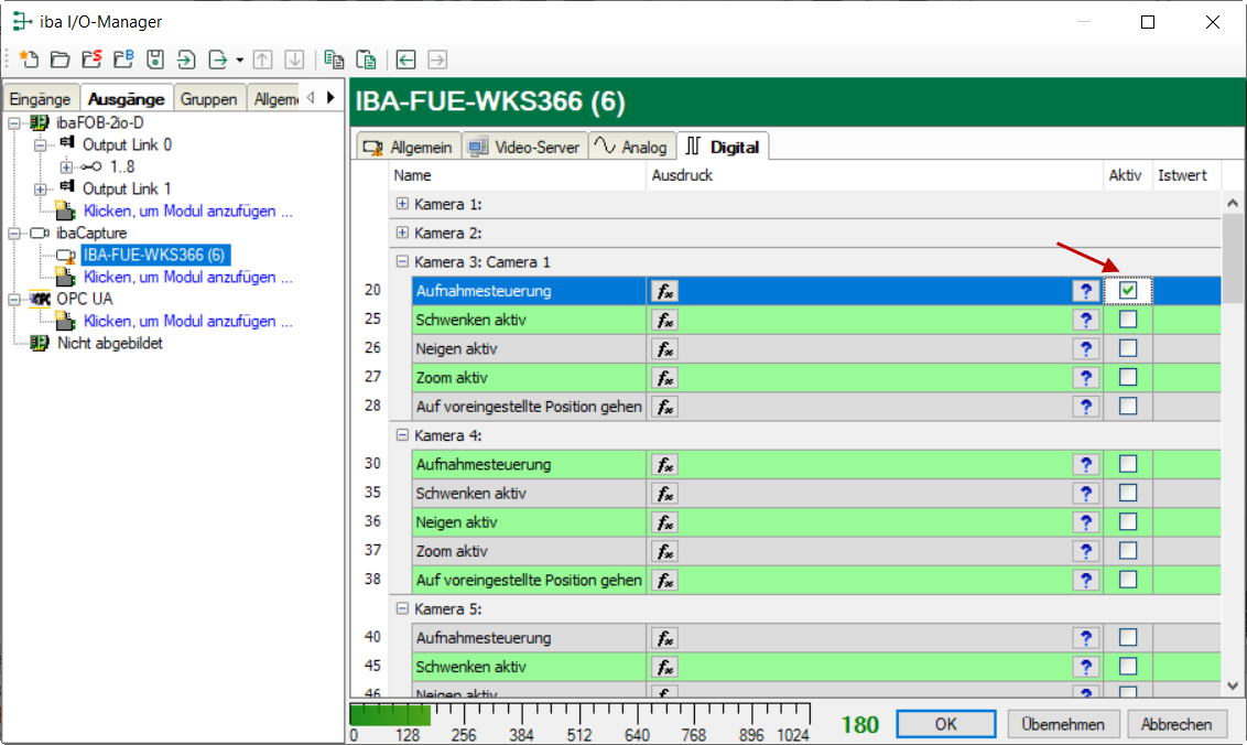 Ab ibaPDA-Version 6.29.1 und ibaCapture-Version 3.5.0 haben Sie die Möglichkeit, die Videoaufnahme mithilfe digitaler Ausgangssignale von ibaPDA zu aktivieren oder zu deaktivieren.