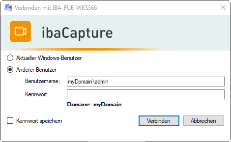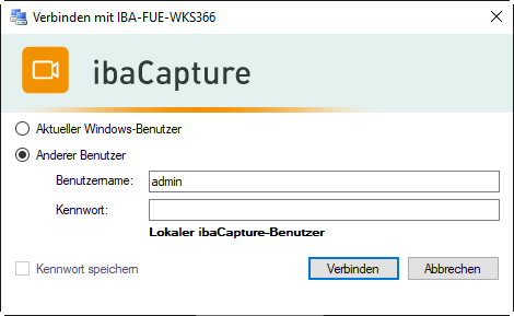 Lokaler ibaCapture Benutzer: Geben Sie den Namen ein