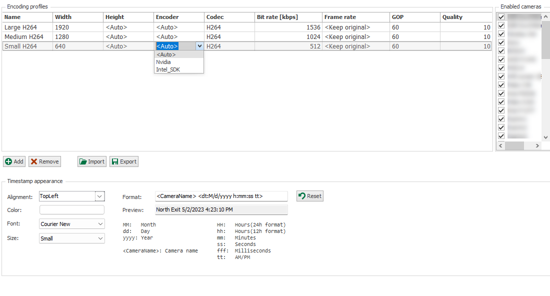 Encoder: <Auto>, NVIDIA or Intel SDK