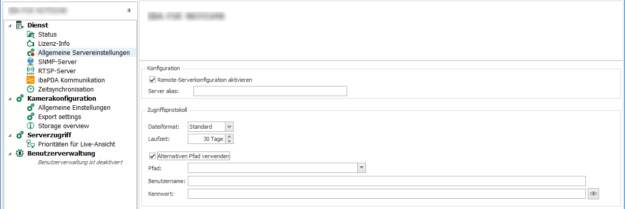 Mit der Checkbox Remote Serverkonfiguration aktivieren kann die Möglichkeit der Remote-Konfiguration dieses Servers aktiviert bzw. deaktiviert werden, auch ohne eine Benutzerverwaltung einzurichten.