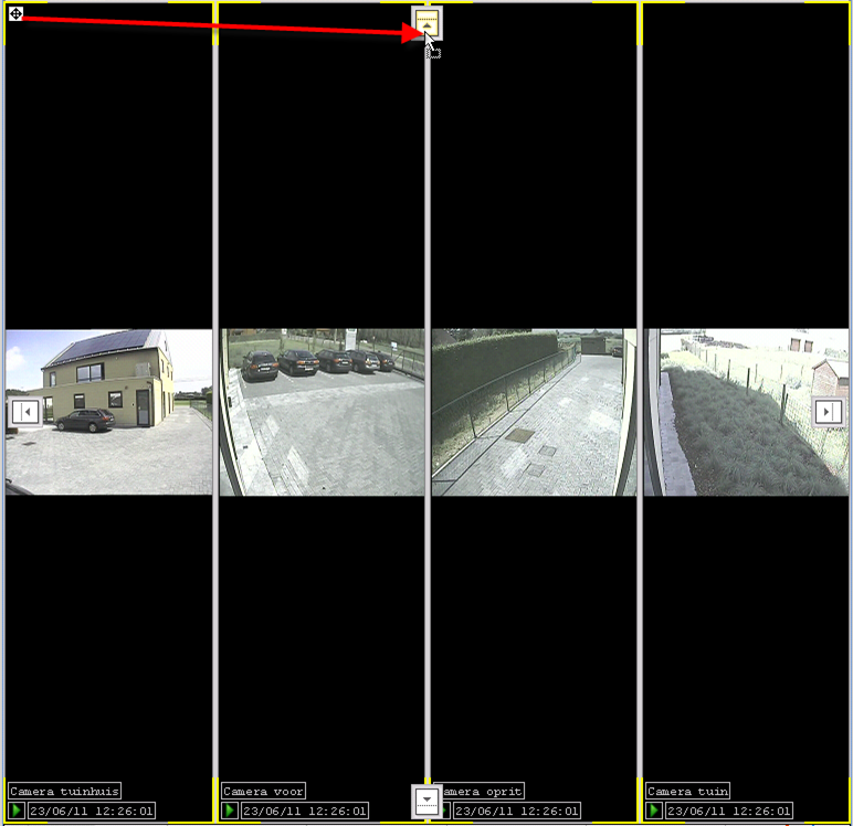 Um ein Kamerafenster in der Größe zu ändern, können Sie mit der Maus die Trennungslinie zwischen zwei Kamerafenstern horizontal oder vertikal – je nach Ausrichtung – verschieben.