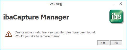 If you try to leave the Live view priorities node while there are invalid rules, you will be asked if you would like to remove these. Only if all rules are valid you are able to leave the node.