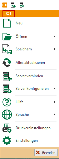 Das Hauptmenü öffnen Sie mit einem Klick auf das Kamerasymbol. Die zusätzlichen Funktionen sind: