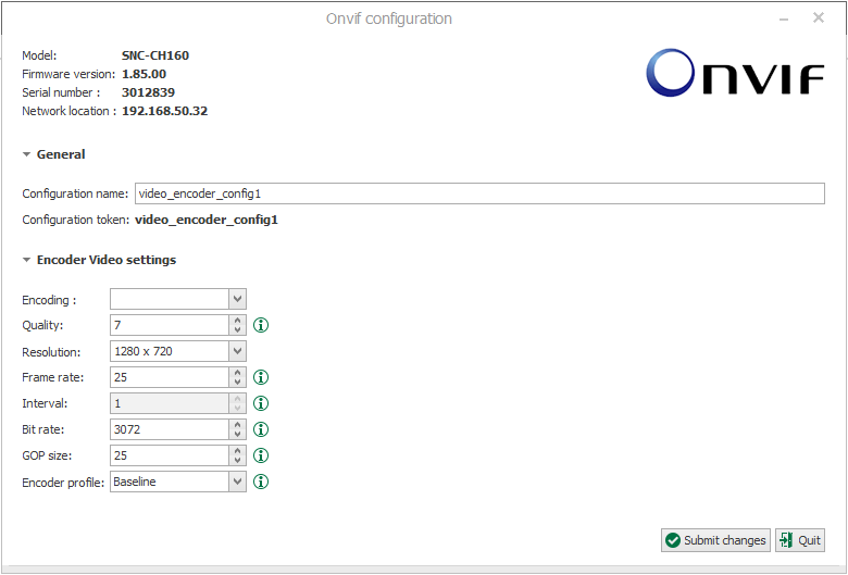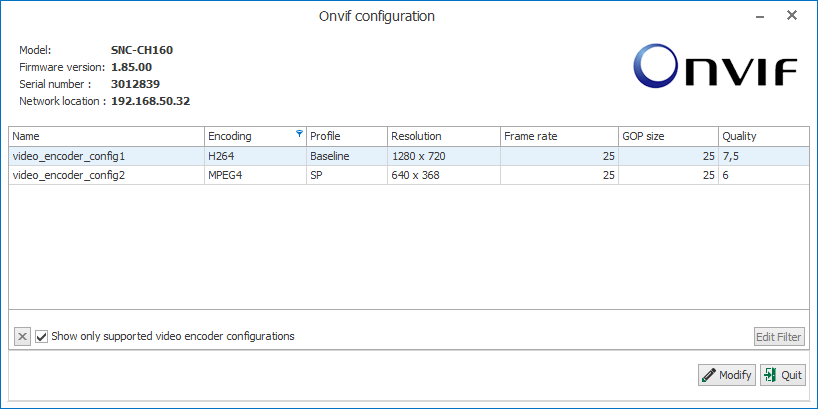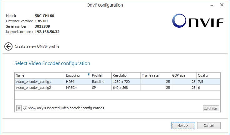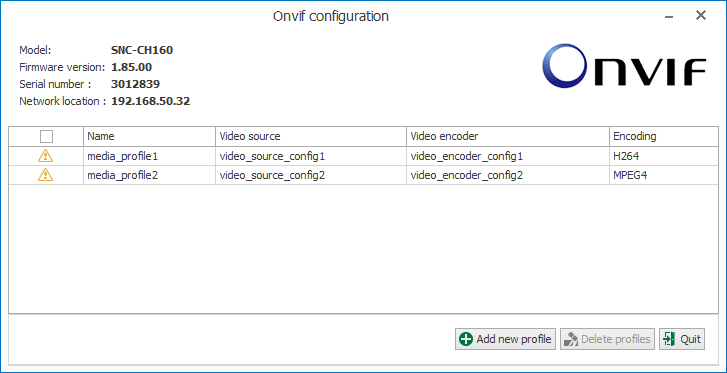 The ONVIF profile is a combination of the source profile (video source) and the encoder profile (video encoder).