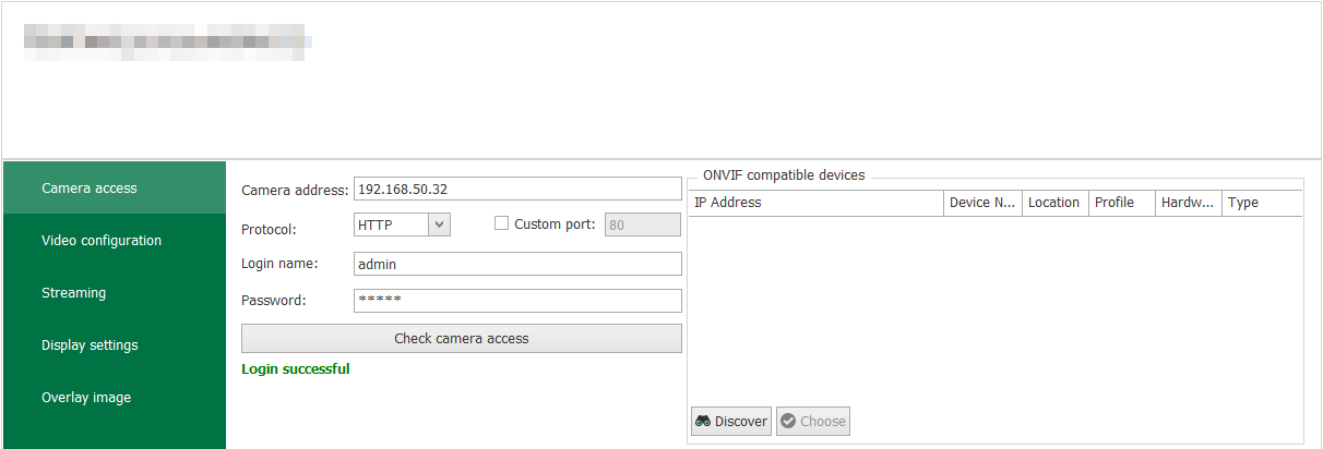 If the device is still not detected, check the firmware version and update it if necessary. Some older camera models possibly cannot be optimized for ONVIF operation. In order to prevent malfunctions as far as possible, we recommend having installed the latest firmware for your ONVIF devices. Network restrictions may be another reason for the automatic detection not working. In such a case, directly enter the IP address of the ONVIF device into the device address field and click <Choose>. |