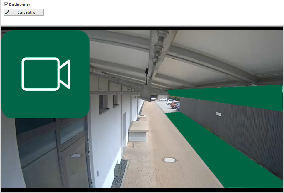 Mit der Overlay-Funktion sollen datenschutzrelevante Bereiche im Bild maskiert werden. Da die Videoströme selbst nicht verändert werden, werden Videos aus potenziell sensiblen Bereichen weiterhin gespeichert. Das Video wird dann maskiert, wenn es im ibaCapture-Player wiedergegeben wird und wenn es exportiert wird.