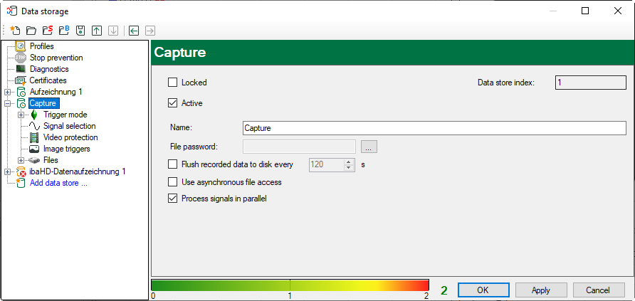 A click on the <OK> button applies the configuration of the data storage.