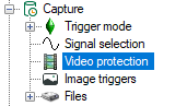Click on the branch "Video protection" to open the video trigger setup dialog.