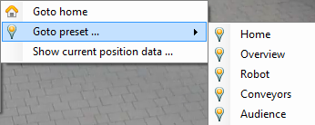 To control the camera via the menu, open the context menu of ibaCapture Player and select "PTZ".