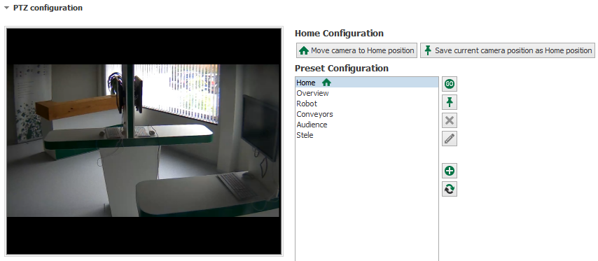 Using the two buttons, you can move the camera to its home position or adjust the home position.