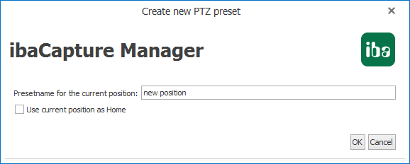 The position can be set as home position by setting a checkmark in the box below the textfield.