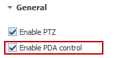 The movement of the PTZ cameras can be controlled with ibaPDA version 6.31 and higher. The prerequisite is that the Enable PDA control checkbox is enabled and that the setting has been applied. The control with ibaPDA is not selected in the default setting.