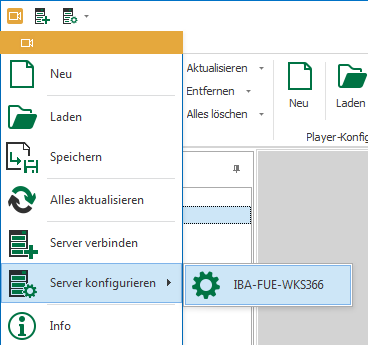 Öffnen Sie das Hauptmenü, klicken auf Server konfigurieren und wählen den Server aus, den Sie konfigurieren möchten.