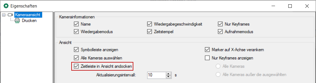 2. Öffnen Sie das Kontextmenü der Kameraansicht und wählen „Zeitleiste andocken" aus.