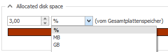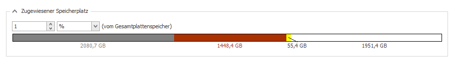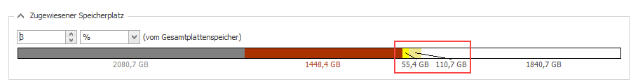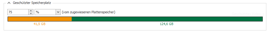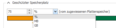 Ein sogenannter geschützter Speicherbereich wird in dem Eingabefeld Geschützter Speicherplatz festgelegt. Dieser Speicherbereich wird auch entweder als Prozentangabe des zugewiesenen Festplattenspeichers oder als absoluter Wert in MB oder GB angegeben.