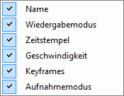 Durch das Setzen/Entfernen eines Häkchens können Sie Kamerainformationen sichtbar machen oder ausblenden, siehe auch Kapitel Menü Kamera-Info.