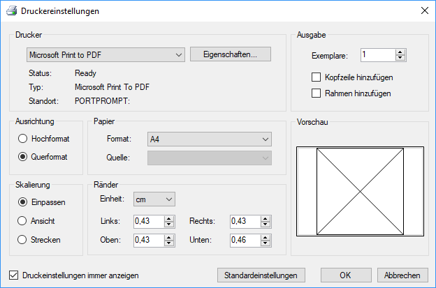Im Untermenü Drucken nehmen Sie Druckereinstellungen vor.