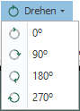 Im Untermenü Drehen können Sie aus voreingestellten Werten auswählen, um wie viel Grad das Bild gegen den Uhrzeigersinn gedreht wird.