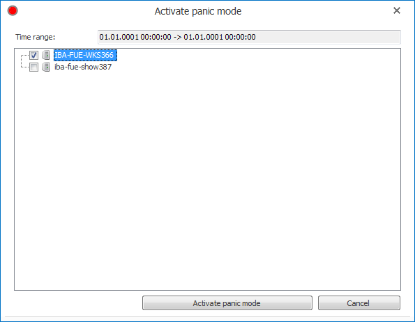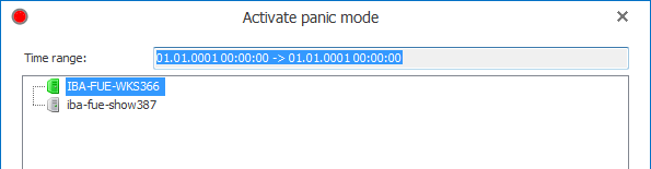 A click on the command opens a dialog where you can select the server(s) the panic mode shall be activated for. Select one or multiple servers in the tree structure and click on <Activate panic mode>.