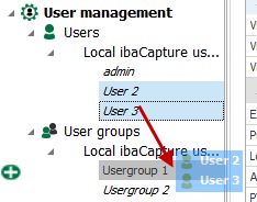 Select one or multiple users in the configuration tree, drag them by keeping the left mouse button depressed and drop the users on the branch of the related user group.