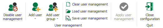 The menu in the ribbon changes to Local, when a single user or user group is selected, see chapter Manage users.