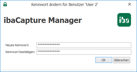 Aus Sicherheitsgründen muss das Kennwort zweimal eingegeben werden.
