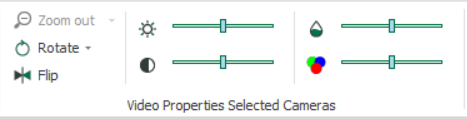 Each camera offers operating functions to control zoom, contrast, brightness, saturation and hue and to flip the image. All functions can be controlled by command icons in the ribbon.