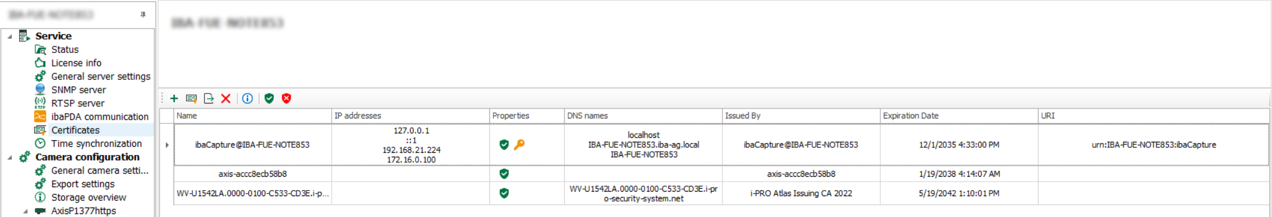 Certificates are managed in ibaCapture in the Certificates node. Certificates are required to establish trustworthy encrypted network connections.