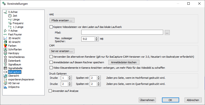 Diese Einstellungen beziehen sich auf ibaCapture.