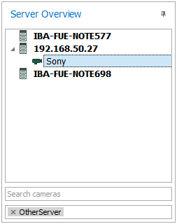 It is possible to establish connections to multiple ibaCapture Servers in the network and add their cameras to the camera view. This way, you can arrange views with cameras of different video servers, also see chapter Adding servers.