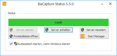 Die Anwendung ibaCapture Server Status wird nach der Installation von ibaCapture automatisch gestartet.