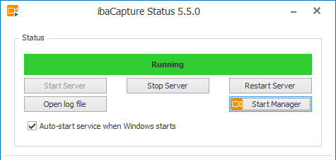 If the option Auto-start when Windows starts is enabled, the ibaCapture Server Status application starts automatically when logging in to Windows.