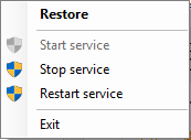 Using the context menu of the ibaCapture Service icon (right mouse-click Restore)